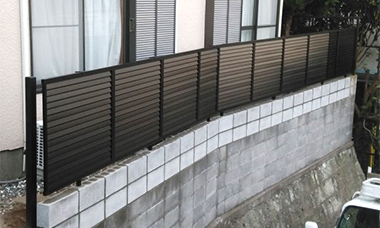 既存フェンス、ブロック解体、新規ブロック積み、