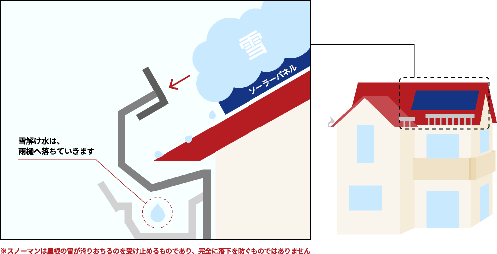 - 屋根形状、風向き、日射方向などにより屋根上の積雪量は均等ではありません。